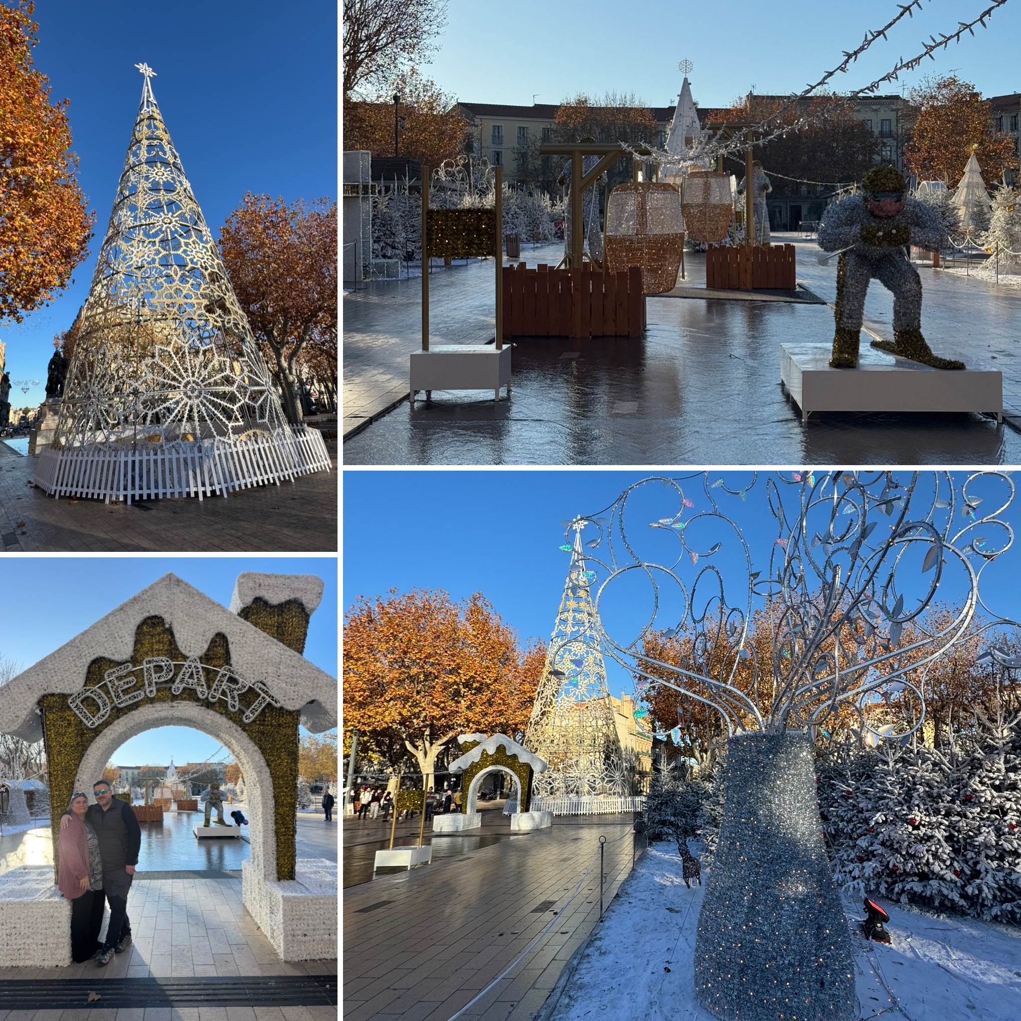 El mercat de Nadal de Béziers és al costat d’aquesta plaça Jean Jaurès, al passeig Allées Paul Riquet que porta fins a l’església. Té paradetes de fusta però no és dels més espectaculars. Sí que és veritat que a la plaça de la catedral hi ha una petita granja amb animals que representa la casa del Pare Noel (ovelletes, ànecs, etc) i que es poden visitar.