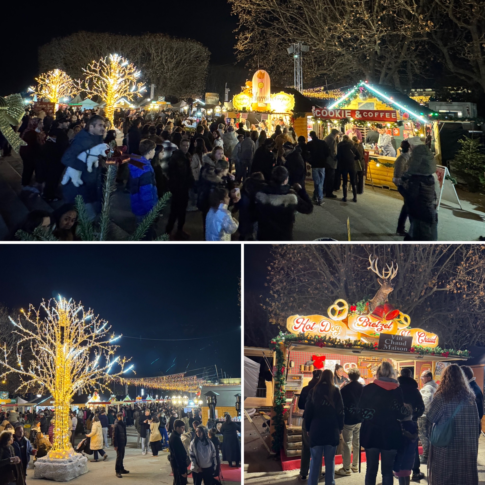 Hi ha paradetes de figures del pessebre, regals com ara peluixos, joguines i joies i també parades de productes per menjar de la zona (cervesa artesana, foie, galetes, …). També hi ha parades per menjar amb algune staules i cadires: creps, salsitxes, fondue, … I també algunes atraccions per als nens i nenes, com ara cadiretes voladores, uns rens que volen i un tobogan per lliscar amb donuts gegant.