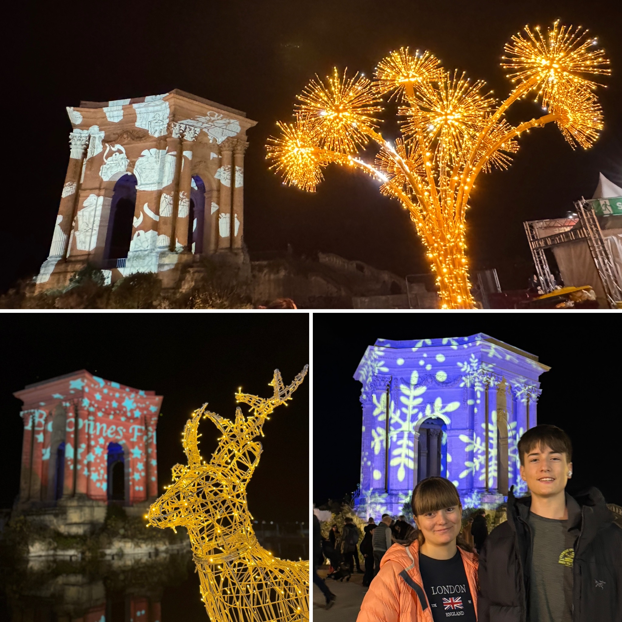 Si esteu per la zona del sud de França, un altre dels pobles imprescindibles per visitar per Nadal és Béziers. No tant pel seu mercat de Nadal, que no és dels més bonics, sinó pel seu jardí de llums enorme i d’accés gratuït. És a la plaça Jean Jaurès i és el gran reclam d’aquest poble. Hi ha moltíssimes figures enormes fetes de llum ambientades de Nadal: la casa del Pare Noel, un castell gegant, la casa de Hansel i la Gretel, un jardí nevat amb rens… i un espectacle de llums a la font de la plaça.