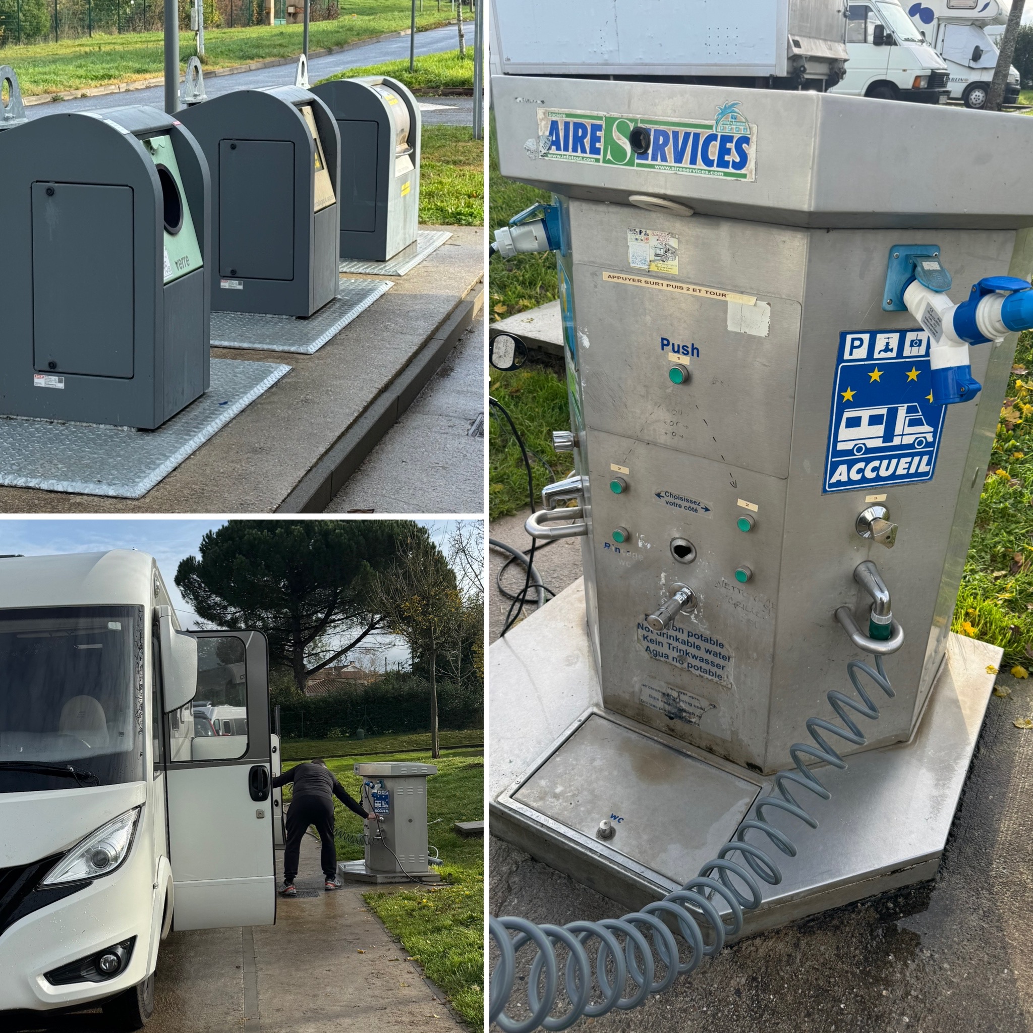 Hi ha una barrera d’accés, que es pot pagar amb contactless, import 8,5€ amb aigua i llum. La màquina ens expedeix un tiquet amb un codi que cal guardar doncs és necessari per poder sortir de l’àrea. Ja hi ha varies autocaravanes estacionades, agafem una parcel.la a sopar i a dormir.