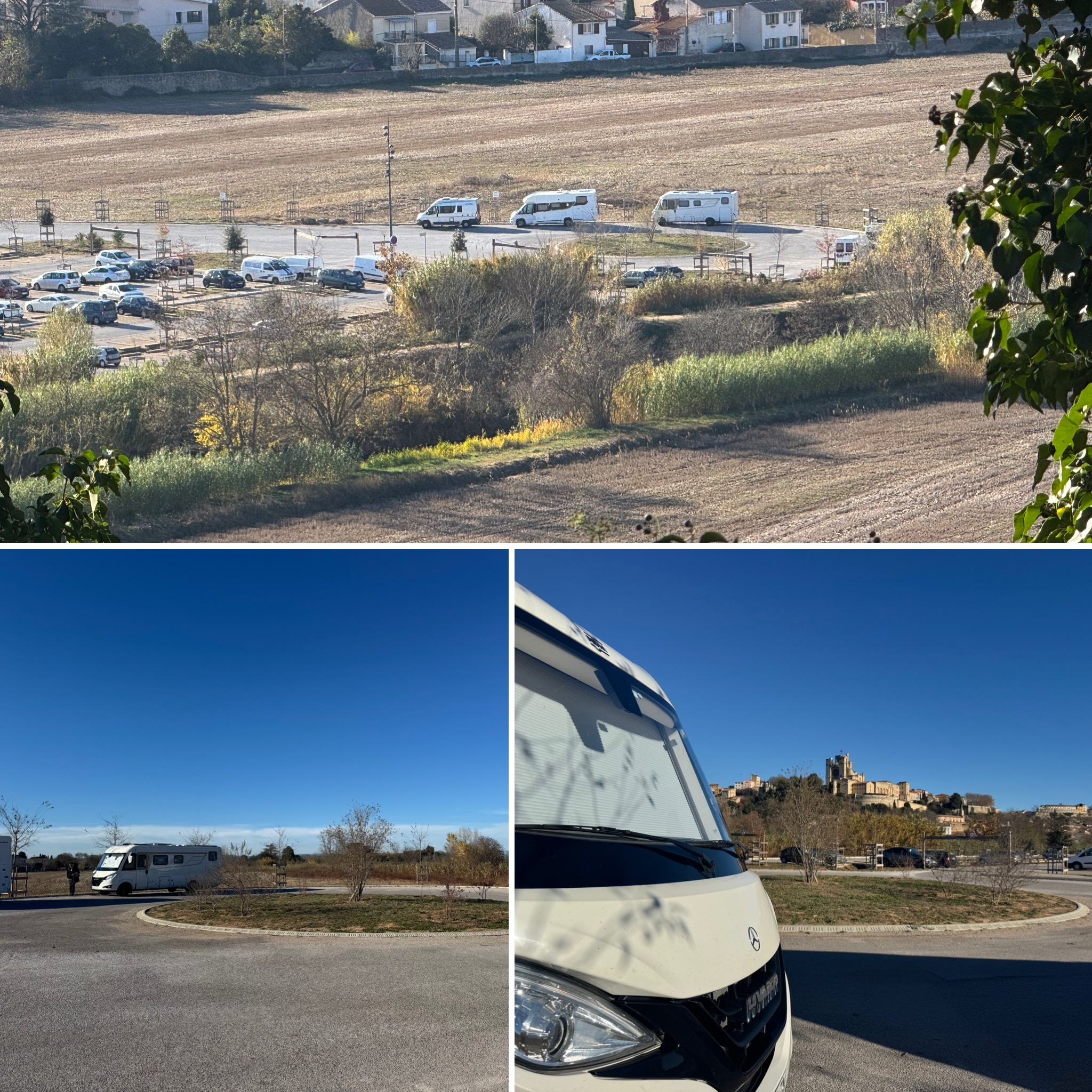 En arribar hi ha forces cotxes, pels nostres vehicles (7,40 llarg) no totes ens serveixen, o sigui que ens esperem una estoneta, i aconseguim una plaça al mig, ocupant dues places. Hi ha varies autocaravanes estacionades de la mateixa forma. Cap a la tarda es buida l’estacionament i arriben més autocaravanes que aconsegueixen també estacionar.