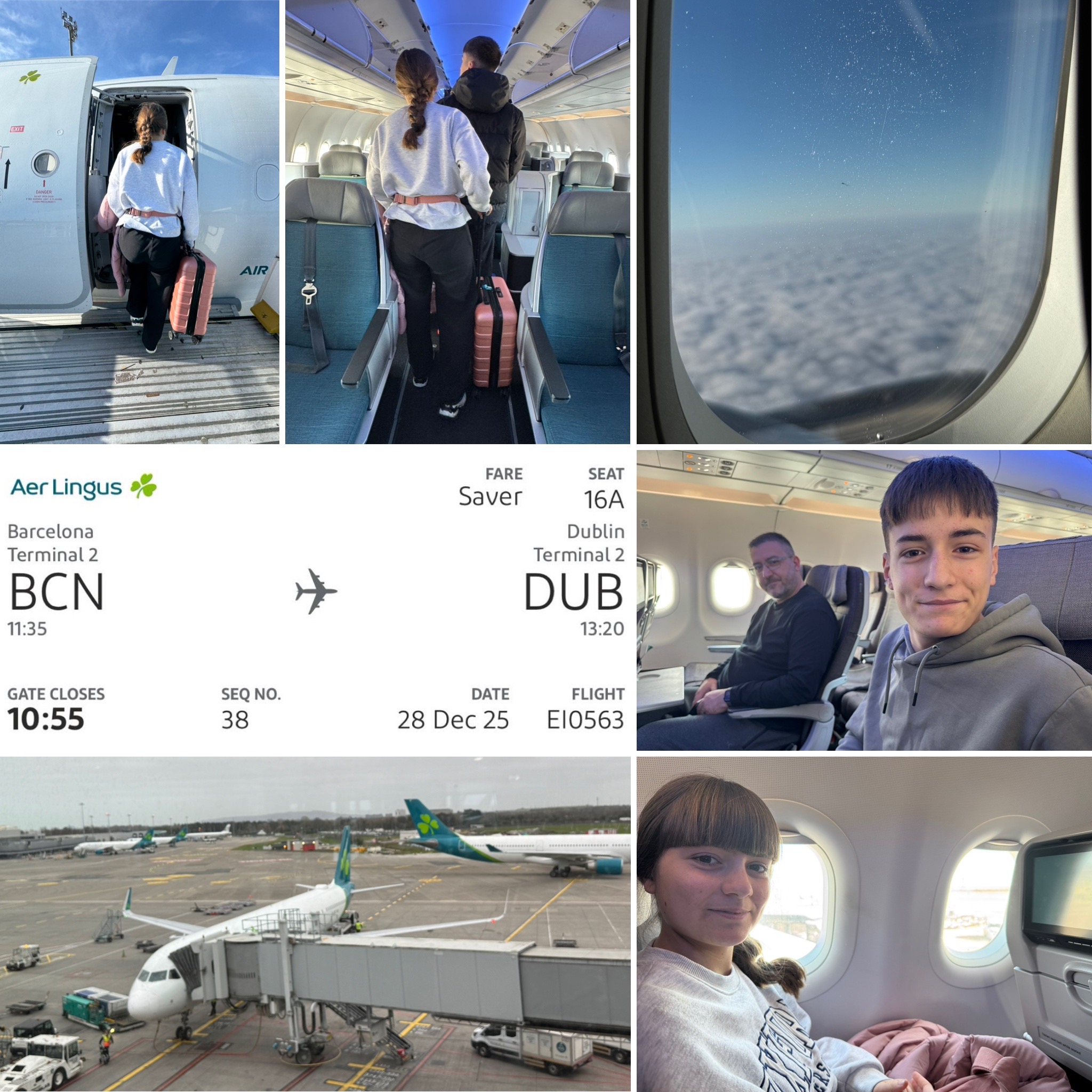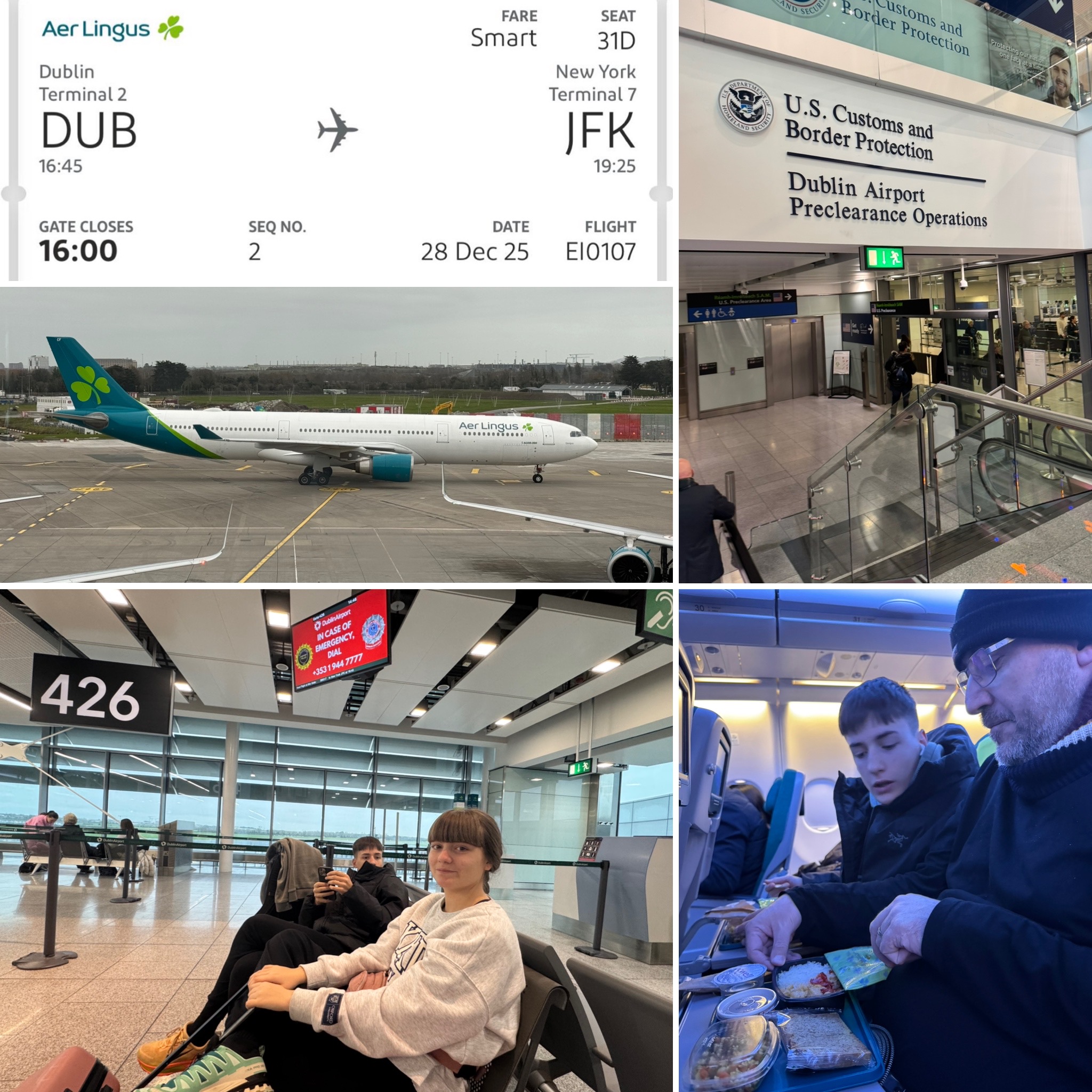 El viatge se’ns passa ràpid, arribem a l’aeroport de Dublín, seguim les indicacions de transbord i tot seguit trips USA, Passem control de passaports, on un a un, ens prenen les empremtes de les dues mans i ens fan foto. Tot seguit passem per seguretat i ens fan treure inclús les sabates, tot un xic estressant.