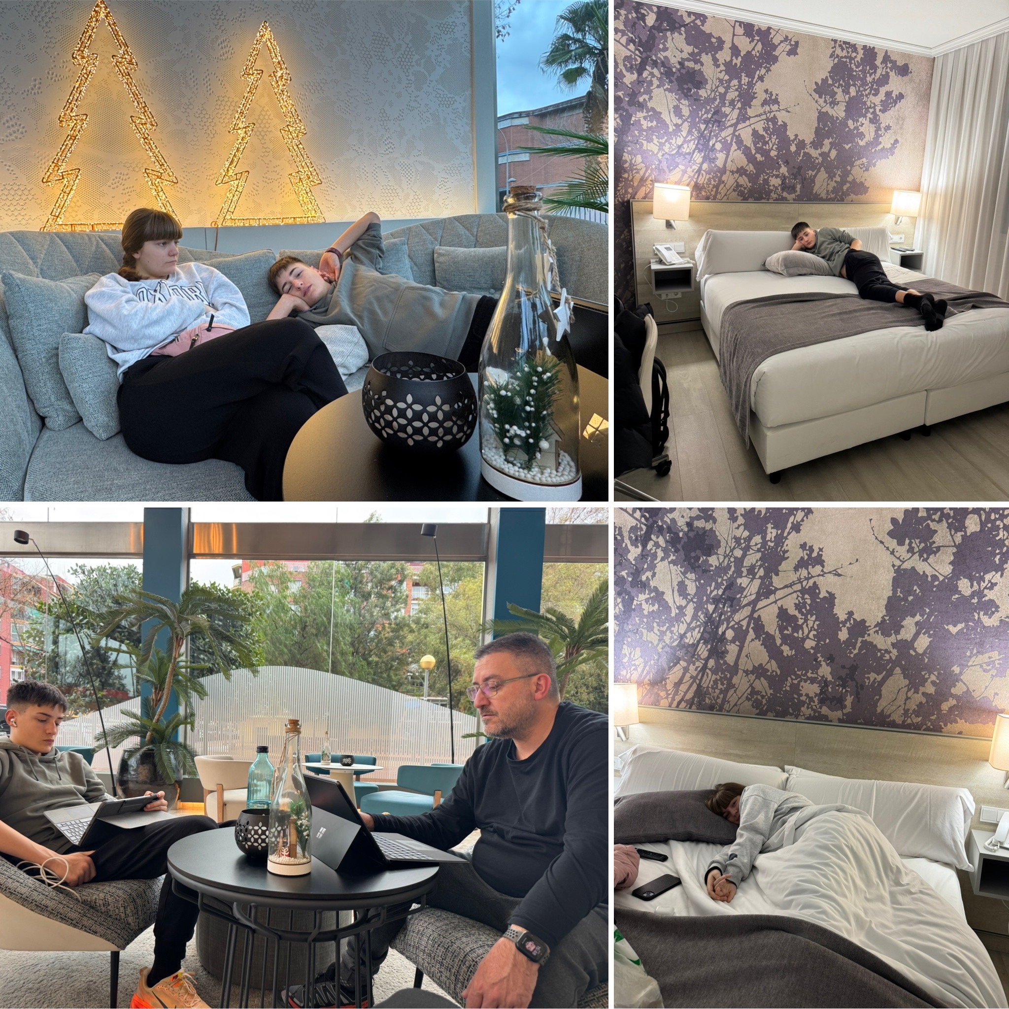 Som un munt de gent a l´Hotel, que estem en la mateixa situació, tots nerviosos. A l’hotel ens donen dues habitacions, contingues, la 127 i 126. Estan molt netes i correctes. L’Ona i jo en una, i Jan i Jordi en l’altre, amb llit de matrimoni. Estan tots els àpats inclosos.